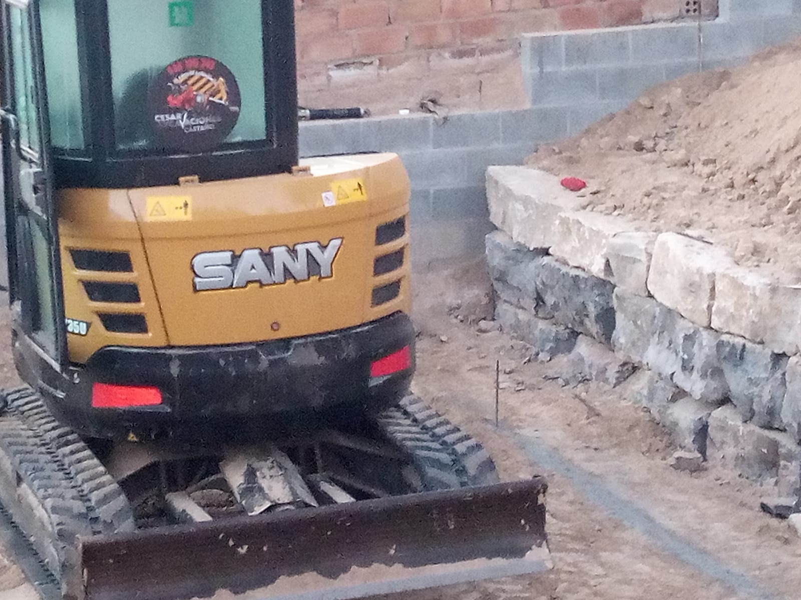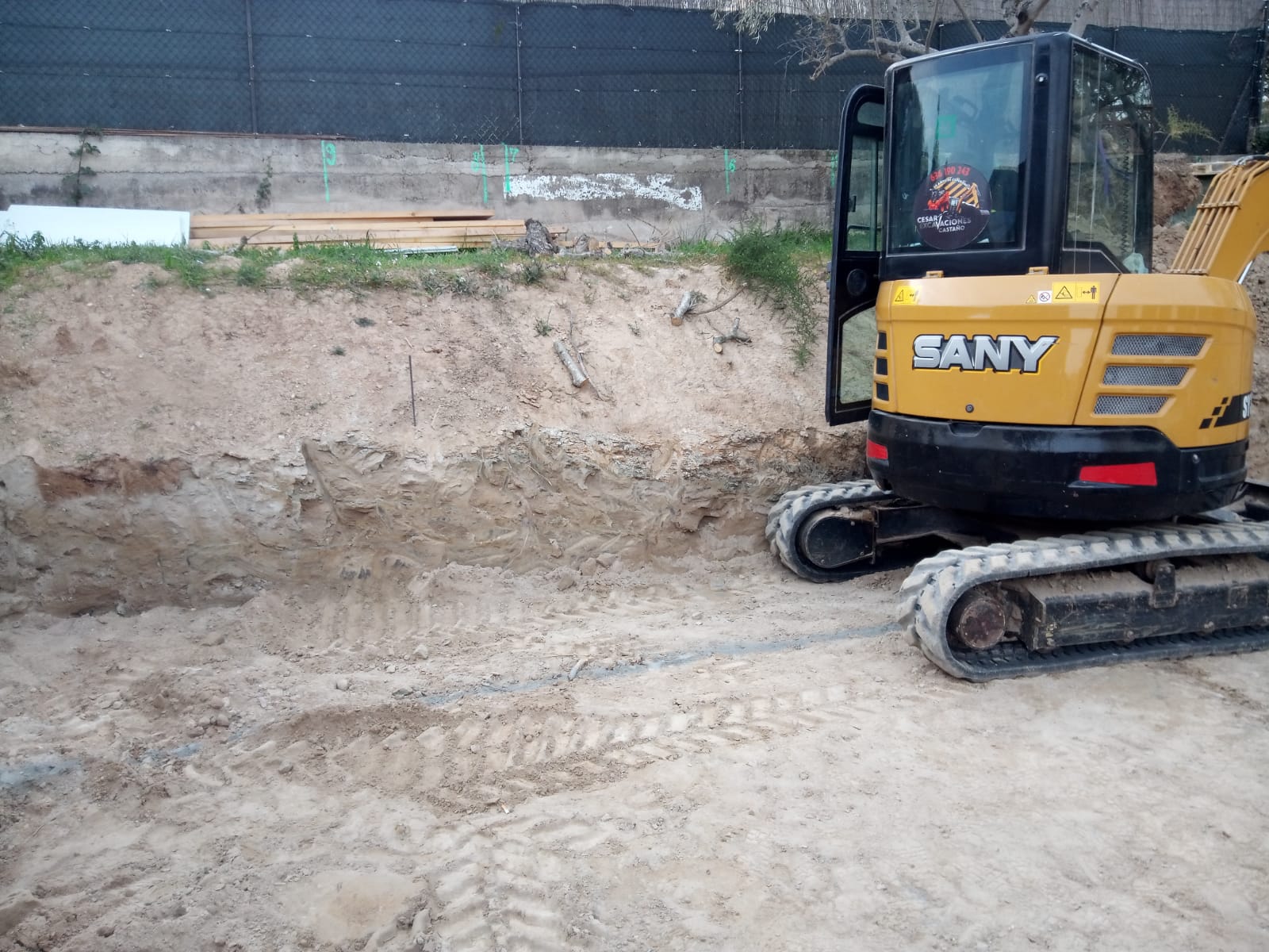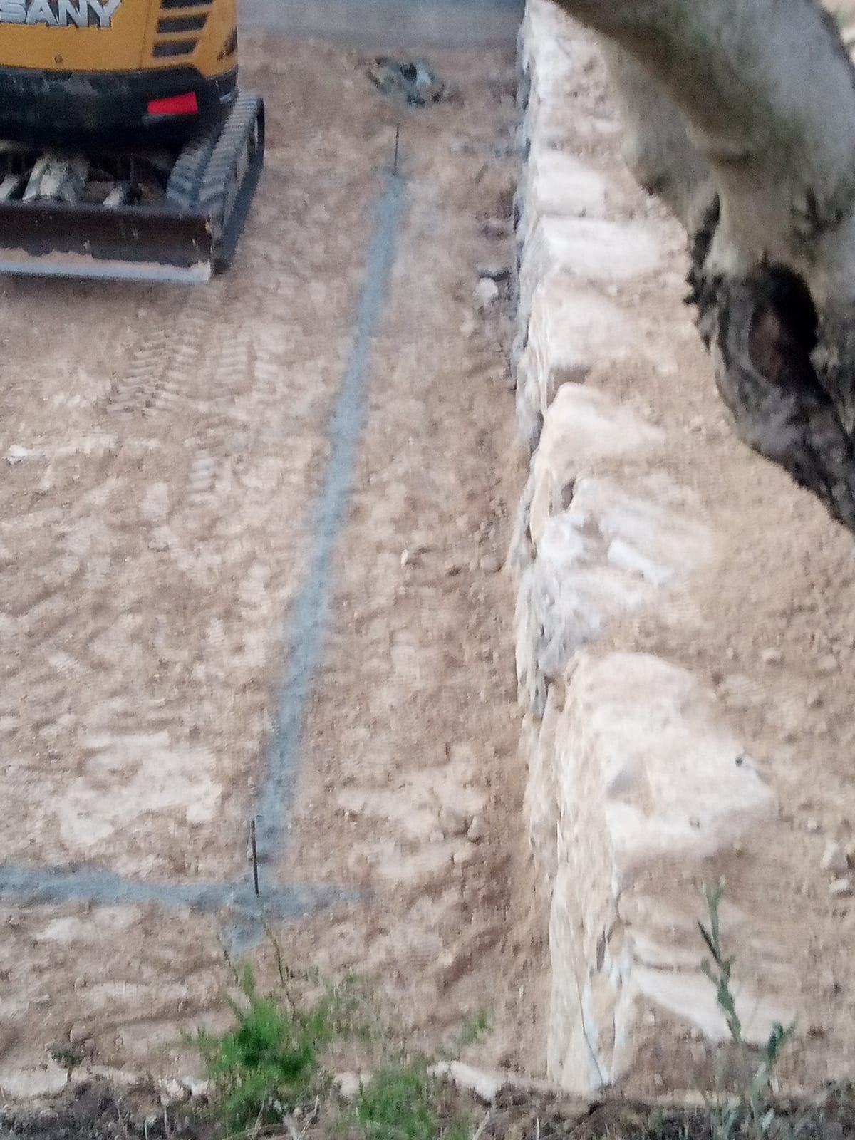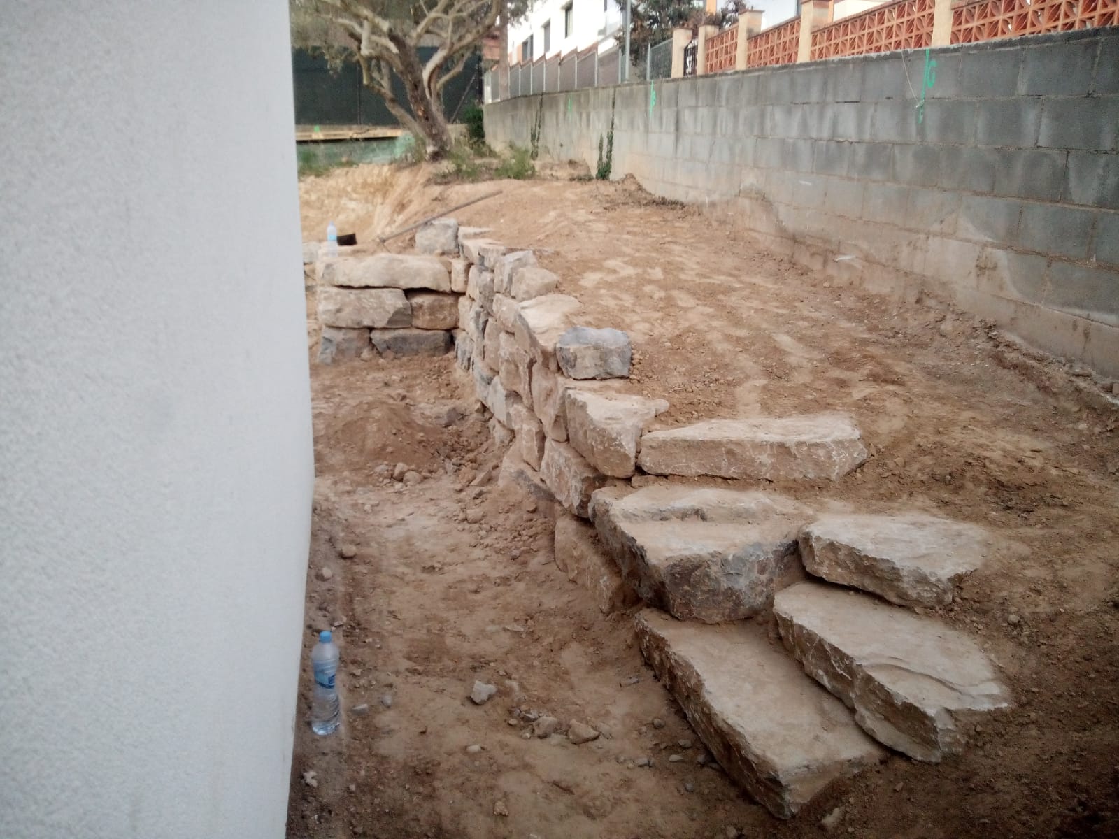 Excavación de piscina con muro de rocalla